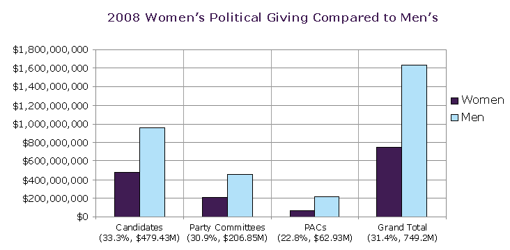 - The 2008 cycle saw a continuation of disproportionate political giving between men and women donors. In 2008,women cast eight million more ballots than men, but made only 31.4 percent of total political contributions.